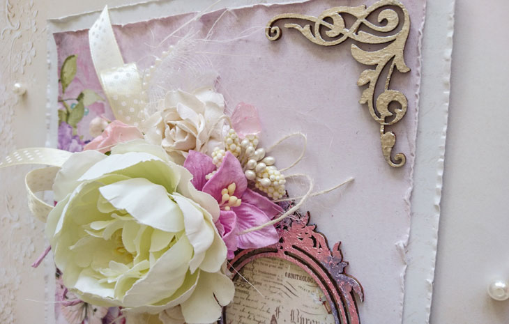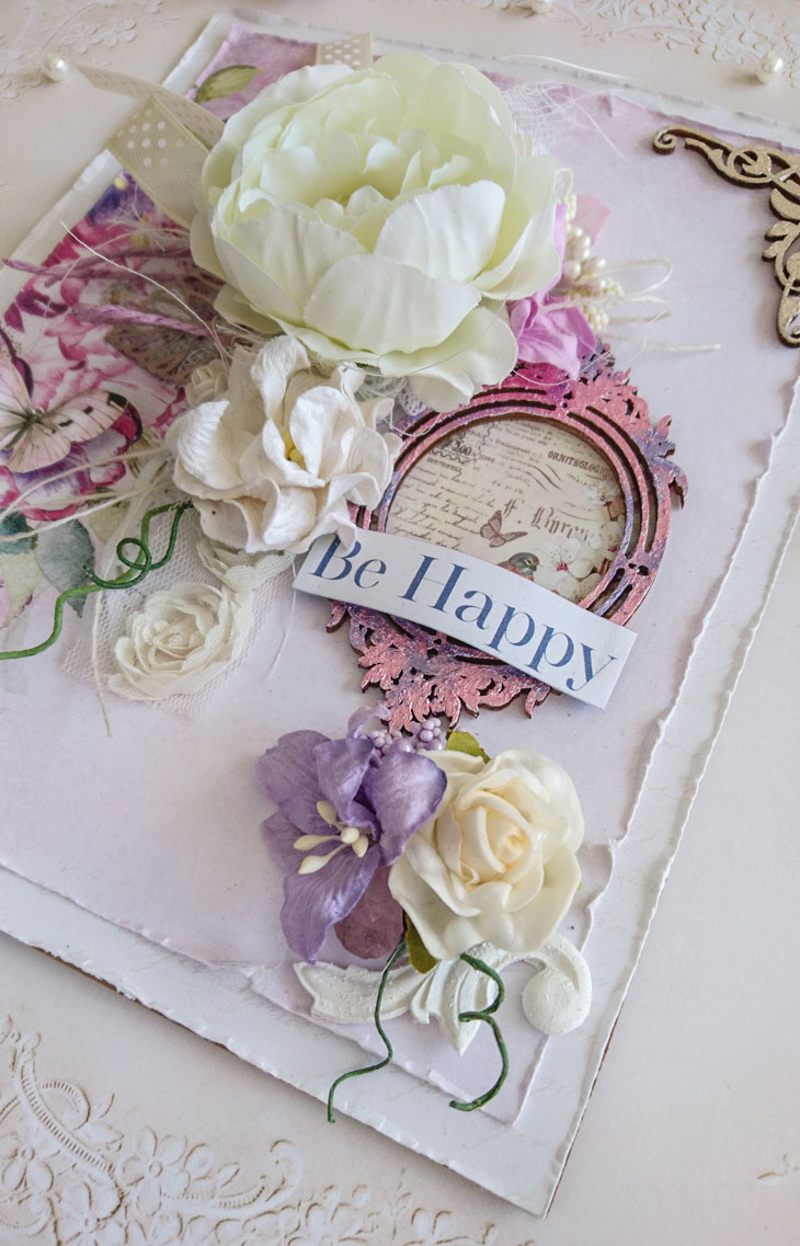 Kartka cała we fioletach, ponownie w niestandardowym formacie 17x21cm, tutaj z kolei najnowszy papier Agi Baraniak Romantic Garden popchnął mnie w kierunku tych kolorów.