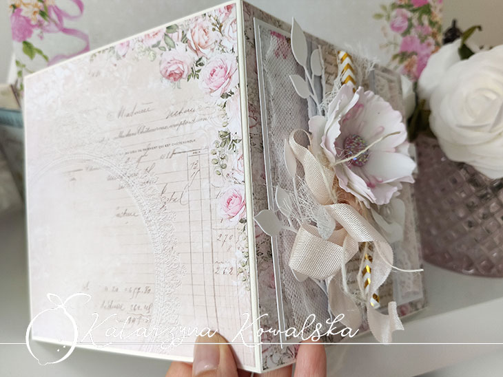 Miałam lekkie obawy, że robiąc taką prawie monochromatyczną kartkę wszystkie dodatki w niej „znikną”. Ale miło się zdziwiłam, kiedy zaryzykowałam i posłuchałam swojej intuicji, po czym zobaczyłam, że wszystko tu ładnie gra i nic nie zniknęło 😉