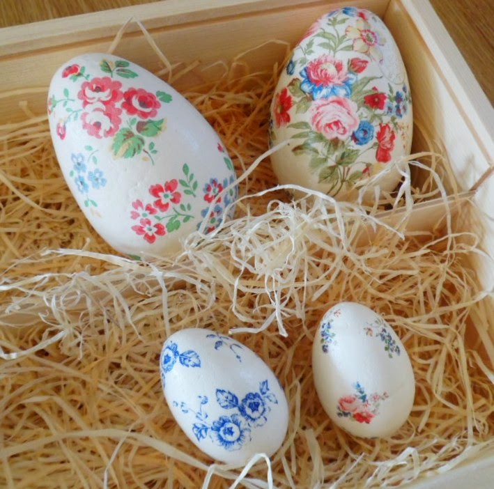 Udało mi się na czas ozdobić jajka 🙂 i to chyba jedyna dobra wiadomość, bo zła jest taka, że to pierwsze i ostatnie jajka styropianowe jakie zrobiłam. Materiał jest bardzo niewdzięczny, ile trzeba się namęczyć, żeby efekt końcowy był chociaż dobry (!) to wiedzą tylko Ci, którzy mieli z takimi jajkami do czynienia. Motyw wybrałam różany, bo ostatnio przyszło mi szaleć za takim.